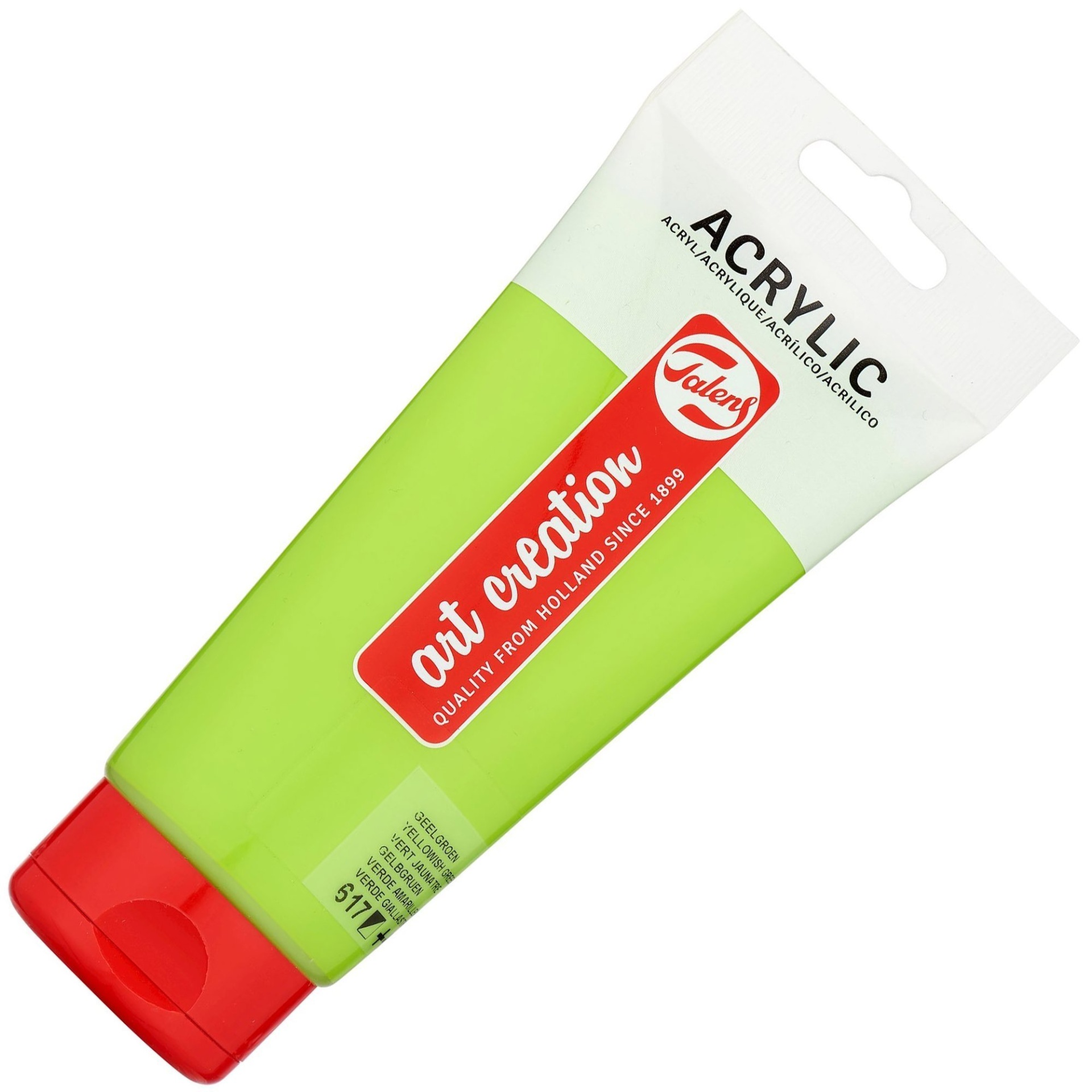 O acrílico ArtCreation da Talens é fabricado a partir de pigmentos extremamente moídos e dispersados numa emulsão á base de resina acrílica. A tinta seca muito rapidamente por evaporação de água, as partículas de resina unem-se entre elas e formam um filme plástico flexível, acetinado e indelével. As 26 tonalidades de cor caracterizem-se por uma excelente resistência a cor e ficam estáveis sem amarelar com o tempo. Podem-se utilizar sobre telas, cartão, papel, etc.