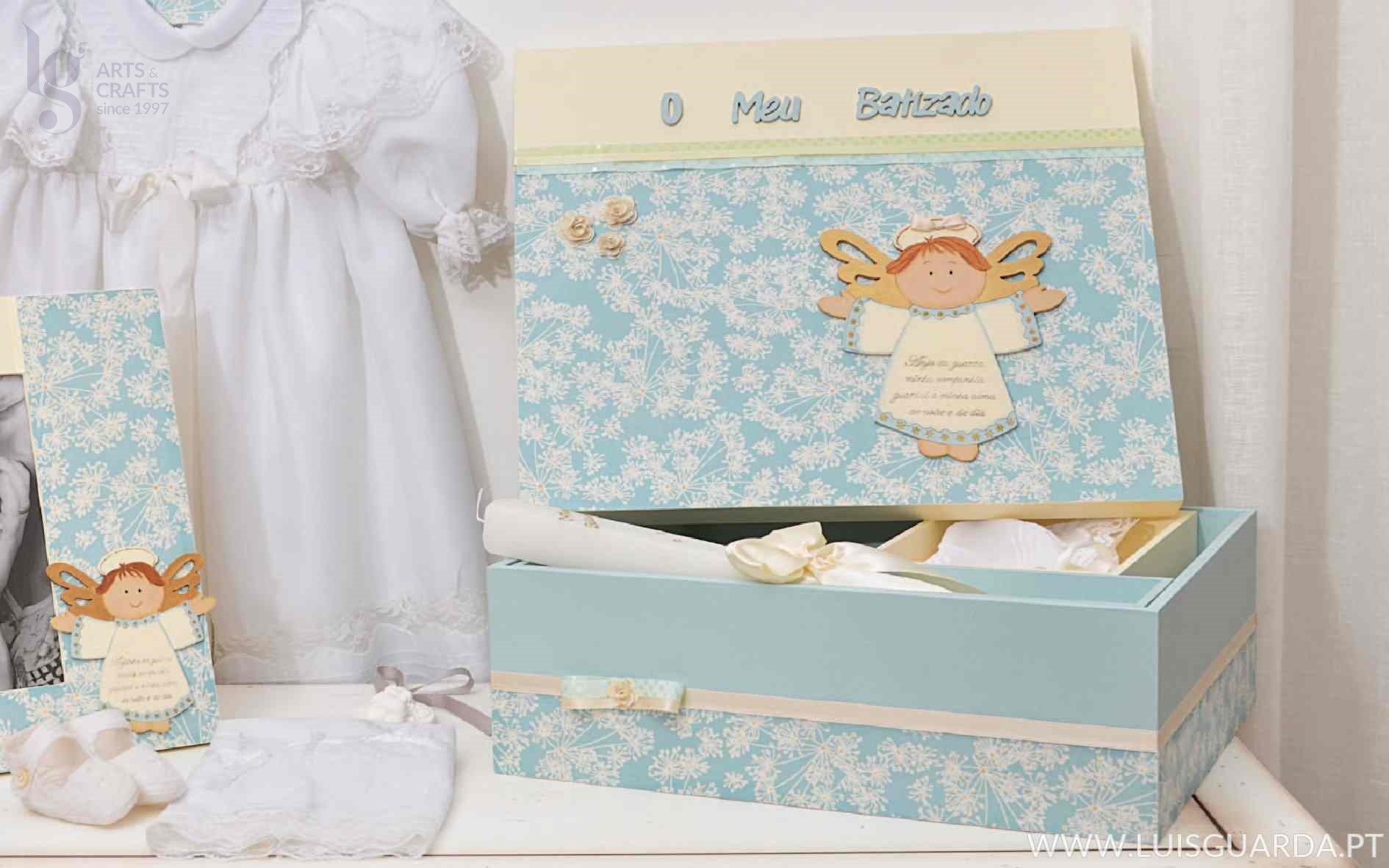 Caixa de madeira para guardar as recordações do batizado. Contem 2 tabuleiro e fundo amplo. Medida interior do tabuleiro comprido: 36x7x4cm, Medida tabuleiro peq.: 20.7x14.4x4cm, Medida do interior da cx: 37.7x30.3x12.8cm. A tampa é de encaixe, esta caixa não contem ferragens.