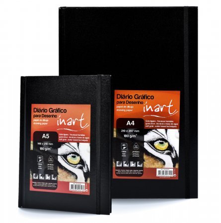 Neste diário gráfico pode desenhar tudo aquilo que quiser! O diário gráfico para desenho da Inart apresenta-se num formato fácil de transportar que estimula a observação e o registo gráfico. É ideal para quem tem o têm o hábito de desenhar as suas experiências do quotidiano com frequência num caderno portátil. Contém 40 folhas de 180gr e permite-lhe captar pensamentos e ideias criativas onde quer que esteja. A capa dura é particularmente útil, proporcionando uma base firme para o seu trabalho, ajudando também na proteção dos seus desenhos e anotações. Este papel de elevada qualidade apresenta uma excelente colagem reforçada e permite-lhe desenhar de uma ponta à outra do diário, sem notar a divisão de páginas. Ideal para técnicas secas e húmidas como: carvão, grafite, Pastel, Lápis de cor, aguarela, guache, etc. Livre de ácidos e 100% celuloso. Disponível em A4 e A5.