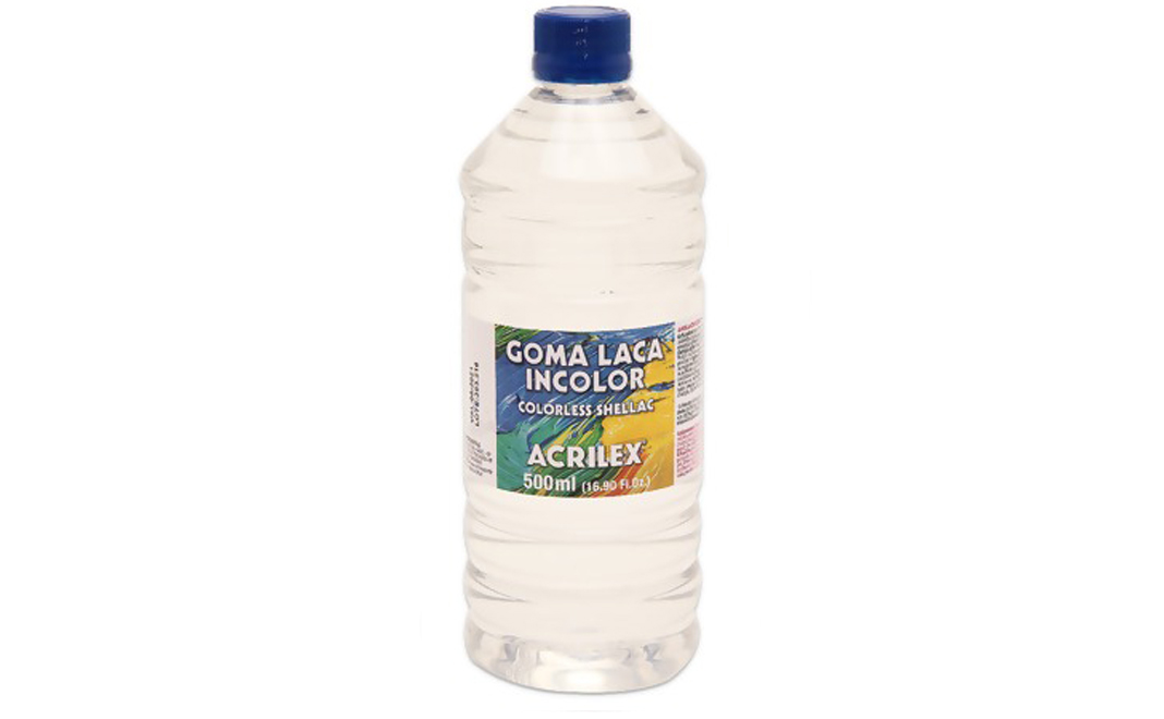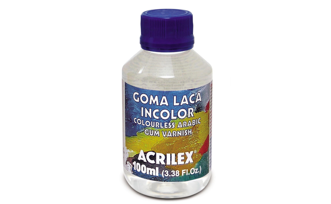 Goma laca incolor Acrilex para impermeabilizar materiais porosos e absorventes como papel, madeira, cerâmica e gesso para posterior pintura. Pode ser utilizada como verniz de acabamento em peças decorativas e para fixação de purpurinas e glitters. Sua principal característica é sua total transparência.