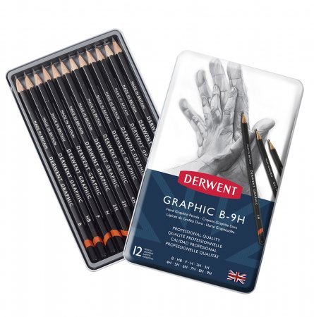Um bom desenho de grafite começa com um bom lápis de grafite! Os Lápis Graphic Derwent são produzidos numa gama completa de 20 tipos de durezas, de 9B a 9H: