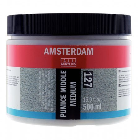Este médio é composto por dispersão de resina acrílica e Pedra Pomes moída e permite fazer uma textura de grão médio fino com relevo. Pode ser aplicado diretamente ou misturado com tinta acrílica em várias camadas de espessura. Enquanto seca, é possível cortá-lo ou trabalhá-lo com a espátula. É resistente à água, depois de seco. Use a temperaturas acima de 10°C. Conserve a temperaturas superiores a 0°C. Disponível em 250ml e 500ml.