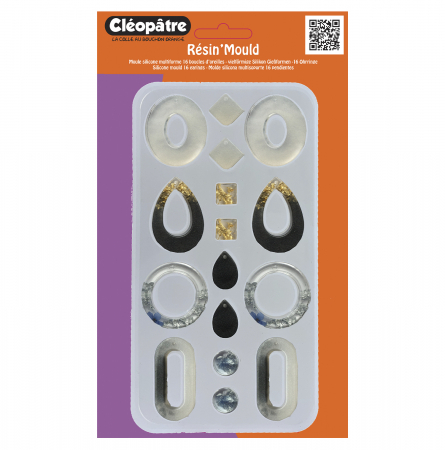 Os Moldes de Silicone Cléopatre Resin Mould são moldes de silicone de alta qualidade para resina, mas também para outros materiais, tais como gesso, cimento encerado, etc. Estes moldes de silicone permitem um uso otimizado com resina epóxi. A maciez dos moldes facilita a retirada das peças sem que se perca o brilho próprio da resina. Neste molde de brincos, encontrará 16 formas diferentes (redonda, em gota, quadrada, entre outras). Deixe-se levar pela imaginação e personalize as suas criações, com flores secas, purpurinas, corantes próprios e muito mais. Com a zona de furação já incluída em alguns moldes, após a secagem, basta colocar o fio para criar os seus brincos ou colar.