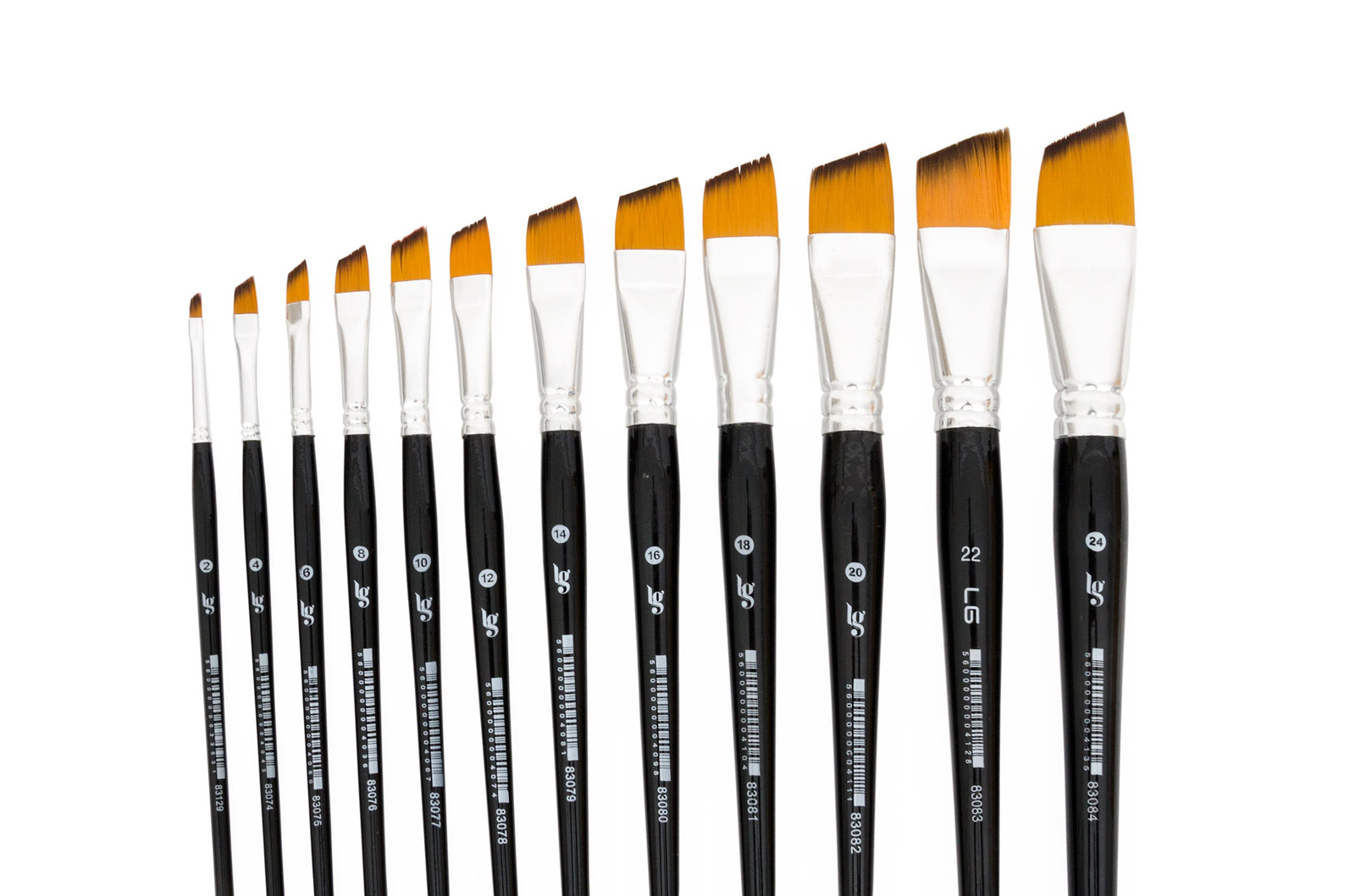 O pincel angular usa uma mistura das fibras sintéticas com espessuras diferentes. As fibras mais grossas contribuem com a força elasticidade, enquanto que as fibras mais finas melhoram a capacidade de absorção da cor. A ponta angular pode ser usada para trabalhos detalhados, ou pode ser pressionada para criar uma linha curva ou reta.