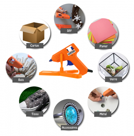 Com o seu tamanho pequeno, a mini pistola de cola Cléo'Gun Fix pode ser transportada facilmente para qualquer lugar. Combina confiabilidade e segurança através do uso de baixa temperatura (105 °C). Os sticks derretem à medida que passam pela pistola e os objetos são colados instantaneamente. É composta por um suporte para maior estabilidade e um sistema anti-gotejamento que protege a sua superfície de trabalho. Para passar a cola, basta apertar o gatilho de forma conveniente e flexível, sem necessidade de pressionar com força! Graças à alimentação automática, a dosagem da cola é precisa e garante uma aplicação uniforme. Utilizam-se sticks de tinta de 7mm de alta qualidade, que não obstruem o seu material. Desenvolvidos especificamente para pistolas de baixa temperatura, os sticks de cola têm um tempo de secagem instantâneo. O cabo de alimentação de 150cm, assegura o seu uso sem restrições de tempo. É adequada para todas as montagens simples ou mais difíceis, graças ao bico ultra-preciso, e permite a colagem de diferentes materiais, como: papelão, cerâmica, madeira, metal ou plástico usando sticks de cola especializados. Também permite que conserte e faça objetos muito úteis. A embalagem contém: 1 mini pistola de cola 10 (60)W, 1 suporte (base de apoio) e 2 sticks de cola transparentes.
