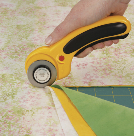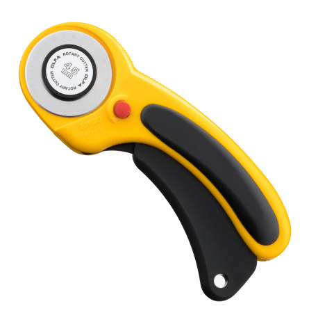 Este cortador rotativo OLFA® é uma combinação de conforto, conveniência, força e segurança. O seu cabo ergonómico com pega de borracha antiderrapante elimina a fadiga e o stress das mãos, quando apertar o gatilho permite que a lâmina se auto-retraia por segurança. O cortador pode lidar com até seis camadas de materiais finos. E o recurso de troca rápida da lâmina não diminuirá o seu projeto. Bom para: cortar tiras e múltiplas camadas ao mesmo tempo. Corta tecido, papel, lona, vinil, estofados e muito mais. Lâminas de substituição: RB45 / PIB45 / WAB45.